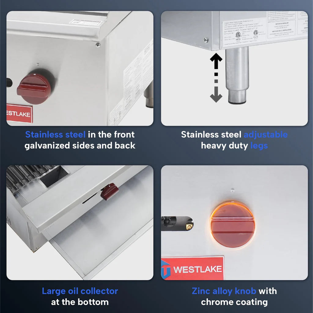 The West Lake ECB-48S gas radiant broiler provides a large 47.4 inch grill width with 120,000 Btu performance for high-volume broiling operations.
