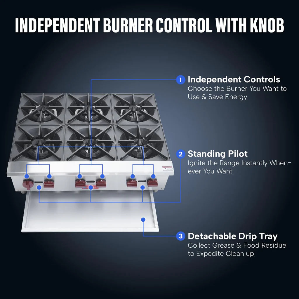 West Lake EHP-6S Gas Countertop Hotplate 35.4" 150,000 Btu 6-Burner