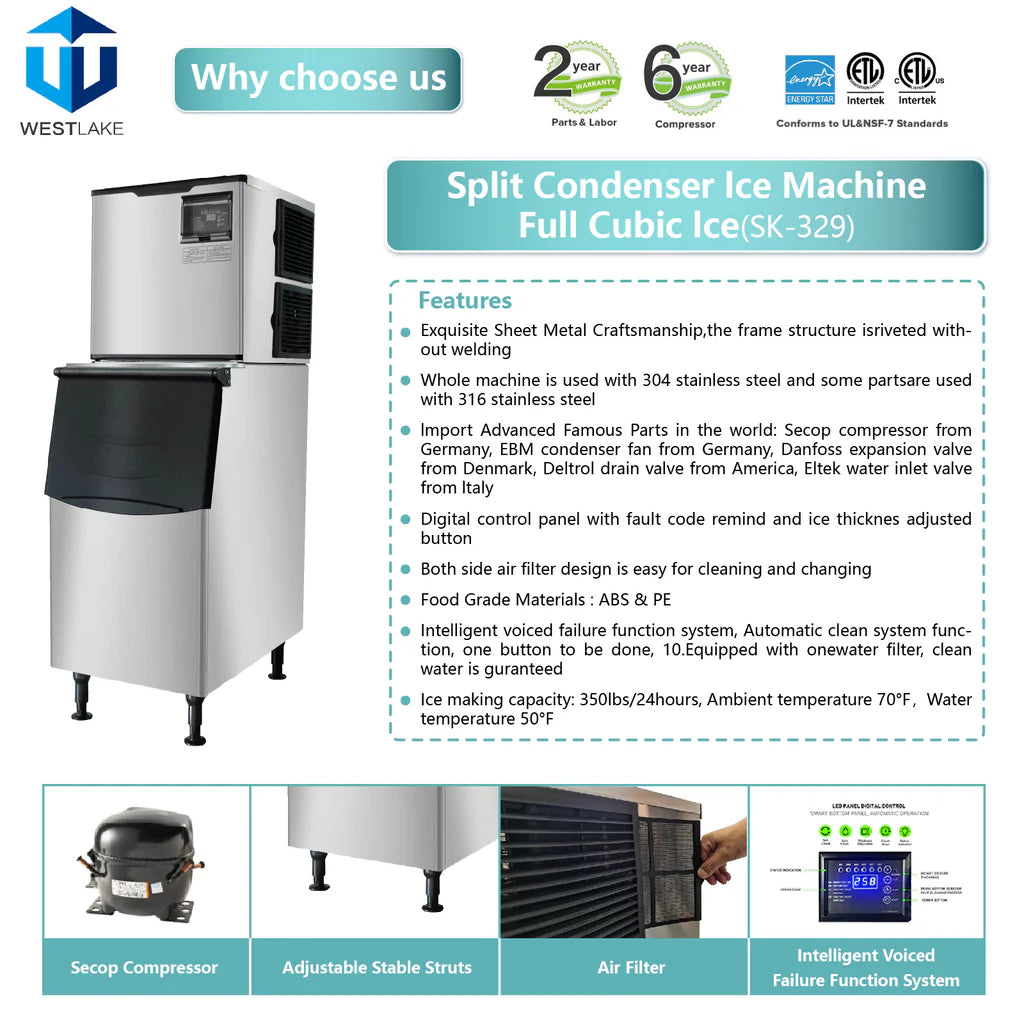 The West Lake SK-329P low-profile modular ice machine offers dependable cubic ice production in a compact footprint. Ideal for bars, cafΓ©s, and tight commercial spaces.
