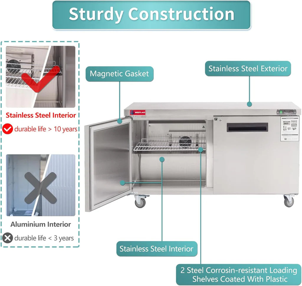 West Lake WKTF-60B Undercounter Freezer 2 Door -8-0°F,"